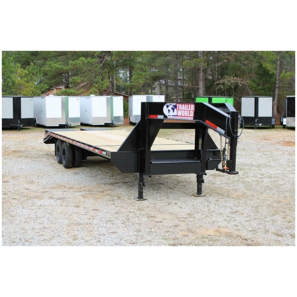 Heavy duty hauling is no sweat with an 8’ x 25’ gooseneck trailer from Caliber Trailer Manufacturing. This built-to-last workhorse is up for anything, with a pressure-treated wood floor, sturdy steel frame and adjustable coupler. An easy fold-down ramp makes loading smooth and simple, and a lockable toolbox in the neck keeps your go-to tools handy.