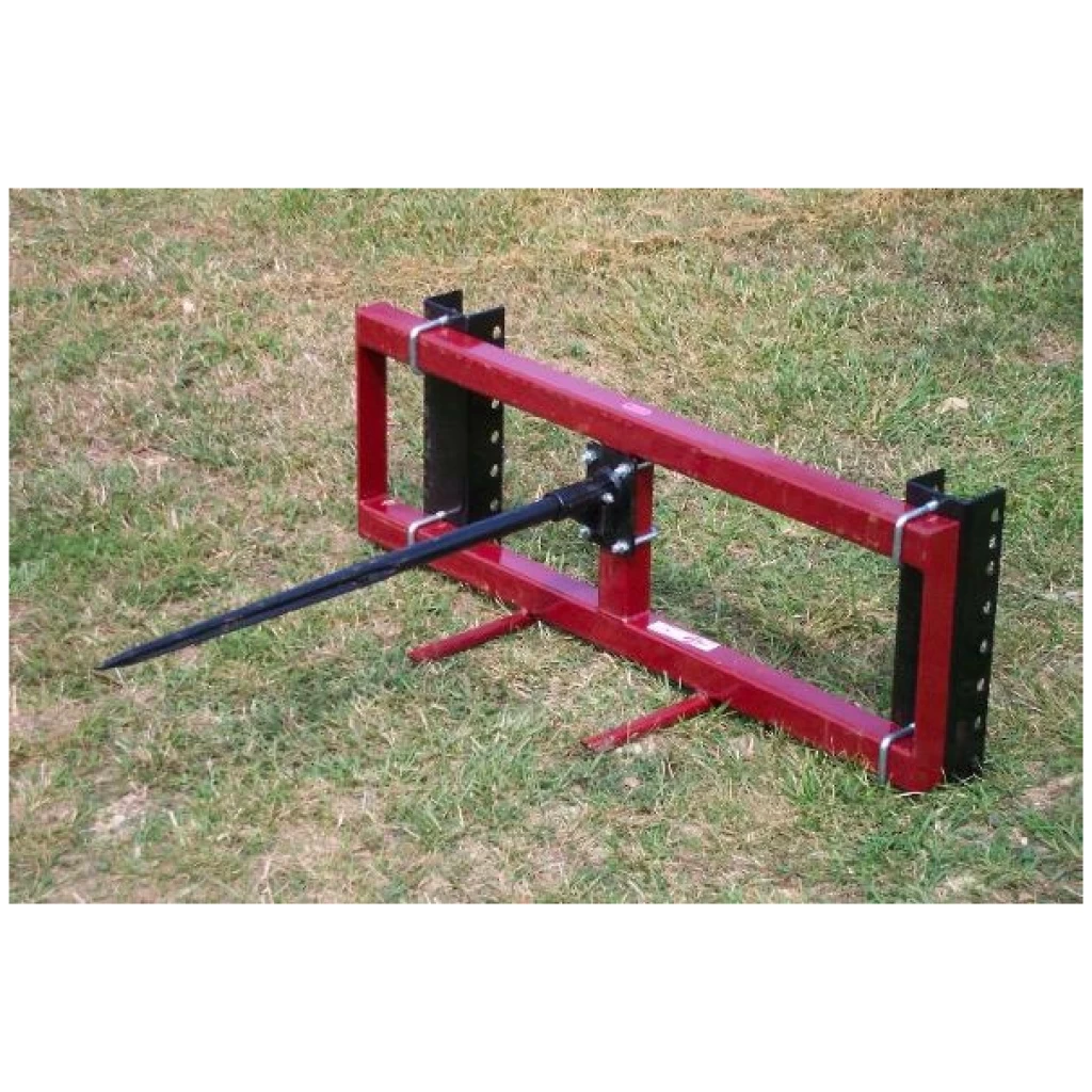 Designed to handle round bales up to 2000 lbs. with a removable forged spike 47″ long and two 1 1/4″ stabilizer spikes. This will fit most double cylinder front loaders with a load center arm distance of 50″