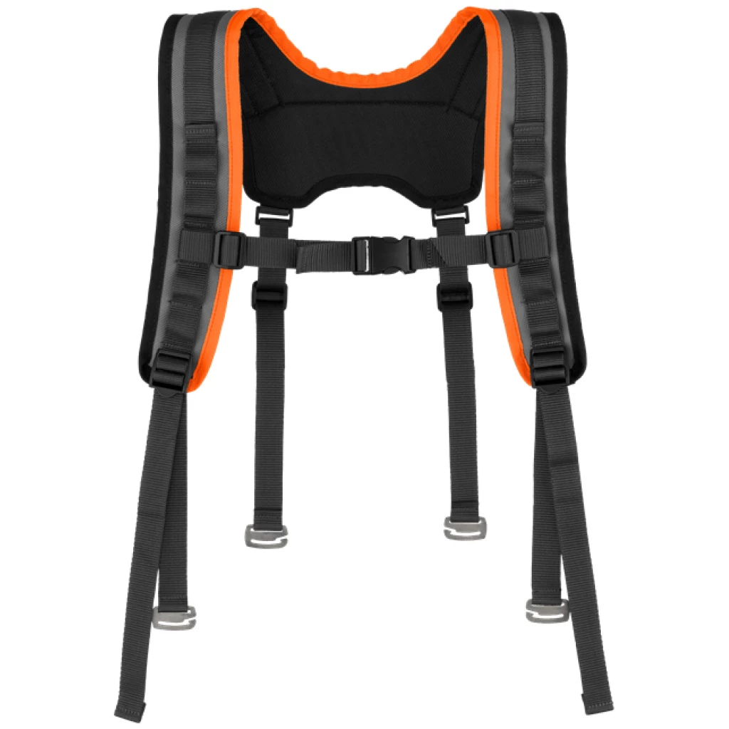 Thanks to the padded shoulder straps, the harness evens the load distribution over the shoulders.